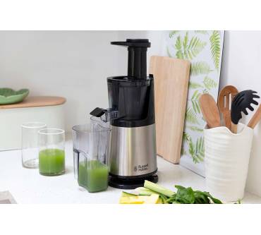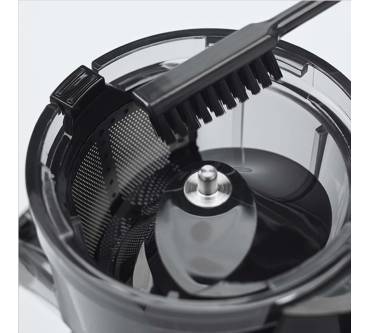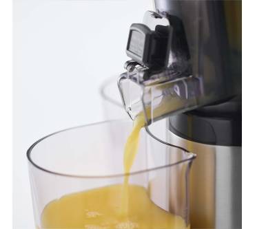 Der Slow Juicer ist eine beliebte Alternative zu Zentrifugalentsaftern und eignet sich mit seinem vergleichsweise günstigen Anschaffungspreis gut für den Einstieg ins nährstoffschonende Entsaften. Drei austauschbare Siebeinsätze für grob, fein und gefrorene Früchte ermöglichen Ihnen nicht nur die Herstellung von frischen Obst- und Gemüsesäften, sondern auch Eis-Sorbets. Die Einfüllöffnung ist Nutzern nach etwas klein geraten, ausreichendes Vorschneiden ist nötig. Ergebnisse gelingen Rezensionen zufolge zügig, geschmackvoll und homogen bei leisem Betriebsgeräusch. Mit etwas Fruchtfleisch im Saft müssen Sie aber dennoch rechnen. Zudem wird der Trester in Erfahrungsberichten als noch feucht beschrieben, die Saftausbeute ist verbesserungswürdig. Bei Verstopfungen, was laut Anwendern schnell vorkommt, verschafft der Rückwärtslauf Abhilfe. Die Reinigung wird trotz Reinigungsbürste und Spülmaschineneignung der Einzelteile als zeitaufwendig beschrieben.