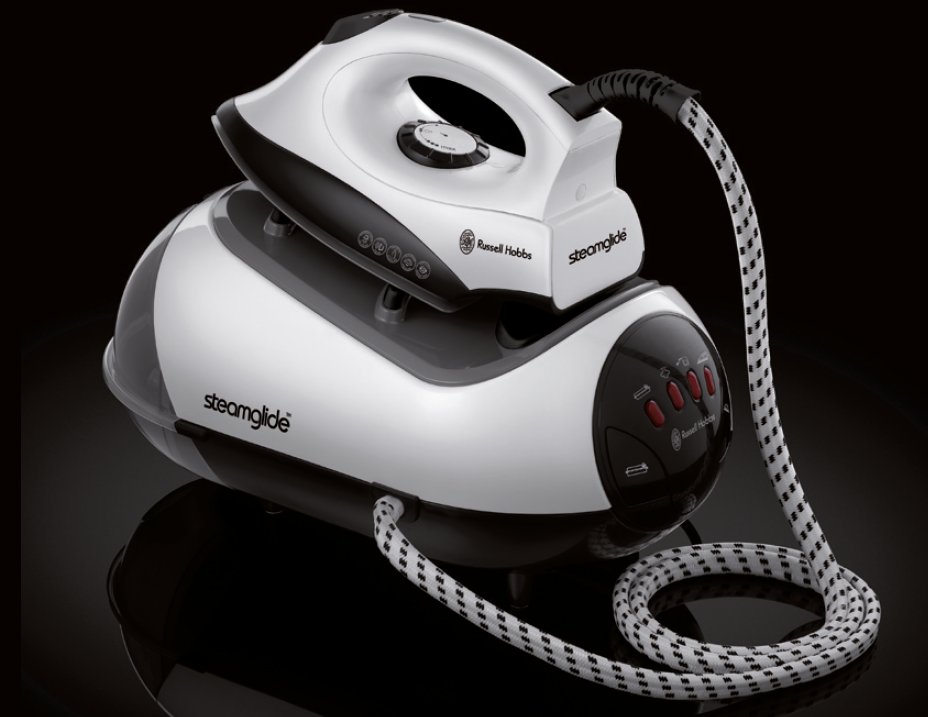 Ein abnehmbarer Wassertank bei einer Dampfbügelstation bedeutet nicht nur, dass sich das Nachfüllen besonders komfortabel gestaltet. Gleichzeitig heißt dies nämlich auch, dass der separate Dampfgenerator dafür nicht extra abgeschaltet werden muss und dadurch Zwangspausen beim Bügeln nicht notwendig werden – die Geräte mit fixiertem Wassertank benötigen eine gewisse Zeit zum Abkühlen und anschließend auch wieder zum Aufheizen. Dies ist bei der Station von Russell Hobbs nicht der Fall. Der Wassertank kann ohne Bedenken während des Betriebs vom Generator abgenommen werden, vor allem für bei größeren Mengen an Bügelwäsche kommt die Arbeit daher nicht ins Stocken, der Zeitgewinn kann recht beträchtlich sein. Mit einer Füllmenge von 1 Liter muss die Russell Hobbs allerdings öfter nachgefüllt werden als die Spitzenmodelle unter den Dampfbügelstationen, die sich mit 1,5 Litern oder sogar mehr auftanken lassen. Diese Modelle sind allerdings in der Regel auch merklich teurer als die Russell Hobbs. In puncto Ausstattung wiederum sticht bei dieser die arretierbare Dampftaste besonders ins Auge. Denn es handelt sich dabei um ein Komfortmerkmal, das unter den Low-Budget-Modellen ebenfalls eher selten anzutreffen ist. In puncto maximale Dampfmenge pro Minute wiederum sticht die Russell Hobbs nicht hervor. Ihre 100 g/min reichen jedoch vollkommen für jede Art von Bügelwäsche aus, zumal der Dampf unter hohen 5 bar Druck zur Bügelsohle geleitet wird und entsprechend gut in das Gewebe eindringen kann. Die Kombination aus hoher Dampfmenge und Druck kommt dem Benutzer ferner beim Einsatz der Vertikaldampffunktion entgegen, also immer dann, wenn Hemden/Blusen oder Anzüge direkt auf dem Kleiderbügel aufgefrischt werden sollen. Ein mit drei Metern außergewöhnlich langes Stromkabel sowie eine Anti-Kalk-Kassette, die zur Reinigung herausgenommen werden kann, runden die Ausstattung ab.