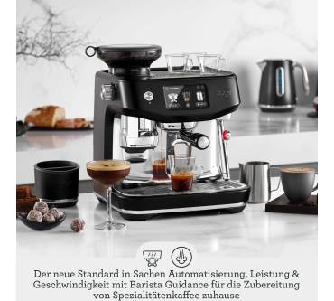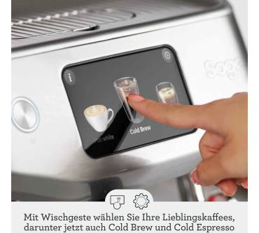Das Oracle Jet-Modell überzeugt mit einer kompakten und hochwertigen Bauweise in Edelstahloptik. Das durchdachte Design setzt sich auch bei der Bedienung fort. Über ein Touchdisplay lassen sich alle Einstellungen vornehmen. Das Gerät gibt Tipps bei der Zubereitung, sodass auch Anfänger damit überzeugende Ergebnisse erreichen. Sie haben die Wahl zwischen 14 Kaffeespezialitäten, darunter auch Cold Brew. Sie haben aber auch die Möglichkeit, viele individuelle Einstellungen vorzunehmen.