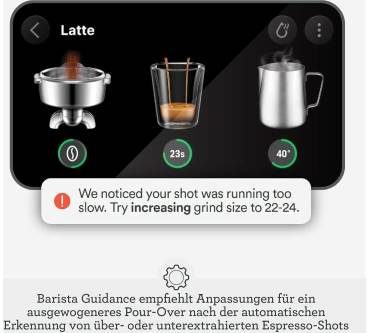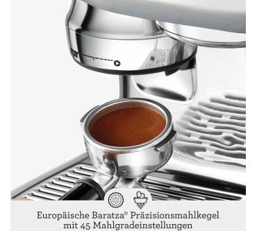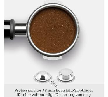 Sehr praktisch ist das automatische Mahlen, Dosieren und Tampern. Die Mahlgrade können Sie in 45 Stufen feinjustieren. Die Siebträger sind aus Edelstahl und somit einfach zu reinigen, ohne dass sie sich mit der Zeit verfärben. Der Milchschaum wird automatisch aufgeschäumt.
