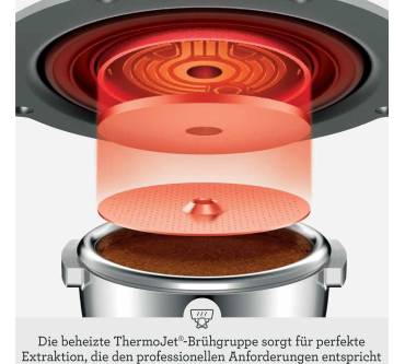 Das Besondere an dem Modell ist allerdings die beheizbare Brüheinheit. Durch den verbauten Dickfilmheizer lässt sich die Temperatur gradgenau einstellen und vor allem konstant halten. Damit können Sie auch als Laie ganz einfach einen sehr guten Espresso herstellen, was vorher nur Profis mit Erfahrung gelang. Die vielen automatischen Abläufe vereinfachen die Handhabung zusätzlich.