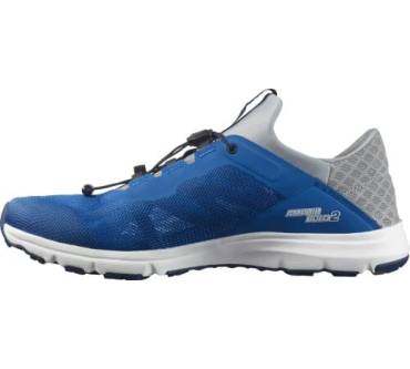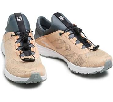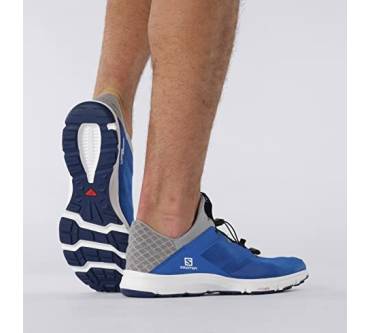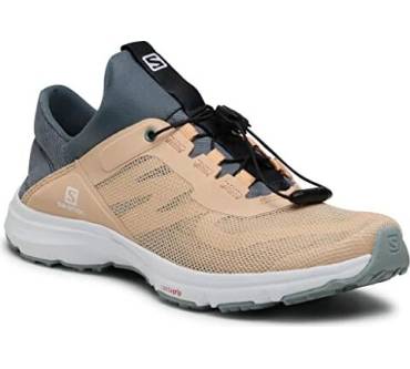 Beim Amphib Bold 2 von Salomon handelt es sich um einen praktischen Hybrid aus einem sehr leichten Hikingschuh und einem alltagstauglichen Sneaker. Der Hersteller nennt es eine Sandale. Auf den ersten Blick erscheint das ungewöhnlich, aber wenn man genauer hinschaut, ist das Obermaterial so luftig, dass der Schuh tatsächlich als Wandersandale durchgeht. Die Ferse kann umgeklappt werden, sodass der Schuh als Slip-On getragen werden kann. Diese Vielseitigkeit kommt bei Kundinnen und Kunden sowie Tester:innen gut an. In Erfahrungsberichten und Tests wird der Schuh besonders für sein sehr angenehmes Tragegefühl durch die weiche Mittelsohle aus EVA-Schaumstoff gelobt. Das sehr atmungsaktive und schnelltrocknende Obermaterial prädestiniert den Schuh für sommerliche Outdooraktivitäten in und am Wasser - daher auch der Produktname. Von anspruchsvolleren Wanderungen sollten Sie allerdings absehe, dafür ist die Sohle nicht gemacht.