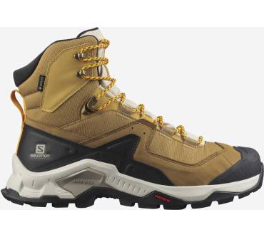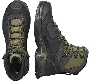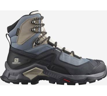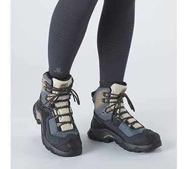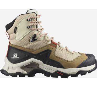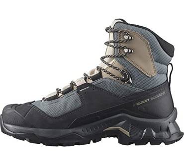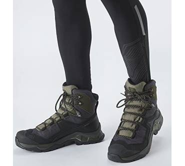Die meisten Hikingschuhe sind flach oder halbhoch. Der Quest Element Gore-Tex von Salomon hat jedoch einen hohen Schaft und gibt Ihnen dadurch viel Stabilität in unebenem Gelände bei einfachen Wanderungen in den Bergen. Für einen hohen Wanderschuh ist das Modell erstaunlich leicht – das merken die Käuferinnen und Käufer auch in ihren Erfahrungsberichten an. Die Damenvariante wiegt nur 505 Gramm. Dank der GTX Membran und dem Textilfutter bleiben Ihre Füße auch bei starkem Regen und niedrigen Temperaturen immer trocken und warm. Der Schuh eignet sich also gut für Wanderungen im Herbst oder Winter. Des Weiteren loben die Rezensent:innen die hohe Verarbeitungsqualität und das angenehme Tragegefühl.