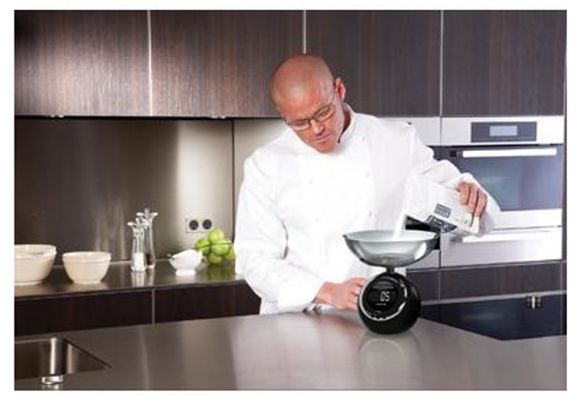 Rein optisch erinnert die 1047 BKDR mit ihrem kalkulierten Retro-Design an eine Old-Style-Küchenwaage aus Omas Küche. Doch der erste Eindruck täuscht. In dem vom britischen Hersteller Salter stammenden Gerät steckt moderne Technik, unter anderem sogar die außergewöhnliche Fähigkeit, Festes und Flüssiges gleichermaßen abwiegen zu können.