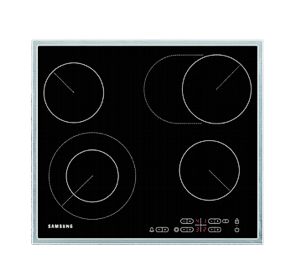 Samsung erleichtert mit dem Glaseramikkochfeld C-61RCAST das Kochen, denn es verfügt über ein sensorgesteuertes Touch-Control-Bedienfeld. Damit lassen sich die Einstellungen auf sehr komfortable Weise vornehmen. Neben der Leistungsstufe ist hier auch die Einstellung des Timers möglich. Und dank der Kindersicherung eignet sich das Kochfeld auch für den Familienhaushalt. Auf dem Kochfeld 53 x 50,5 Zentimeter großen Kochfeld befinden sich vier Kochzonen. Darunter zwei Einzelkochzonen mit jeweils 14,5 Zentimetern Durchmesser, eine Zweikreiskochzone, die entweder 17 oder 26,6 Zentimeter beträgt und eine Zweikreiskochzone, bei der der Durchmesser von 12 auf 21 Zentimeter vergrößert werden kann. Eine Bräterzone bietet das Glaskeramikkochfeld allerdings nicht.