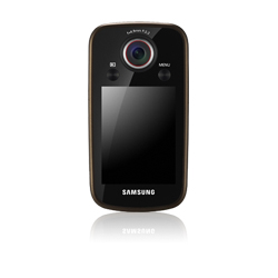 Der Hosentaschencamcorder Samsung HMX-E10 nimmt Full-HD-Videos im H.264-Format auf und speichert sie zusammen mit 8 Megapixel Fotos auf einer microSD-Karte. Der Clou an der Mini-Kamera ist ihr 1/3,2 Zoll großer CMOS-Sensor, der mit dem Einsatz der progressiven BSI-Technologie gebaut wurde und wesentlich lichtempfindlicher als herkömmliche Camcorder-Chips ist. Die Videokamera ist unter anderem mit einem USB-Stecker ausgestattet und kann bequem von jedem Laptop aufgeladen werden. Bedient wird das Gerät über einen 2,7 Zoll großen Touchscreen, der mit einer Auflösung von 230.000 Bildpunkten naturgetreue Farben und gute Kontraste bei der Bildwiedergabe ermöglichen soll.