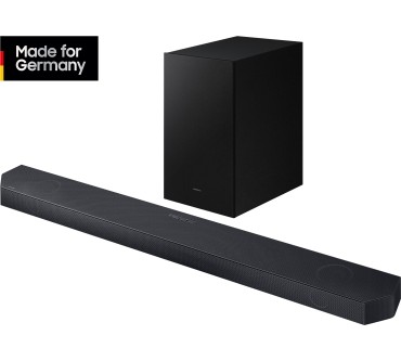 Bei der HW-Q710GD von Samsung handelt es sich um eine Soundbar aus dem mittleren Preissegment, die mit einem Subwoofer und vielen weiteren Zubehörteilen geliefert wird. Dank des mitgelieferten HDMI-Kabels, der Wandhalterung und der einfachen Installation kann Sie sofort in Betrieb genommen werden. Die Soundbar ist nur in Schwarz erhältlich und hat ein schlichtes, elegantes Design. Das Display wird in Tests teilweise als etwas zu einfach beschrieben. Das hochwertige HDMI 2.1-Kabel erlaubt im Zusammenspiel mit der eARC-Kompatibilität des HDMI-Anschlusses der Soundbar für das Übertragen von hochwertigen Soundformaten, wie zum Beispiel Dolby Atmos. So bietet die Soundbar laut Testerinnen und Testern einen sehr räumlichen, kräftigen Sound mit hoher Klarheit. Lediglich der Subwoofer könnte noch ein wenig mehr Präsenz vertragen. Im Test wird daher empfohlen, den Subwoofer möglichst nah an der Sitzposition anstatt neben dem Fernseher zu platzieren. Die Soundbar verfügt über Bluetooth. Ihr Smartphone können Sie problemlos verbinden und beispielsweise Musik von Ihrem Handy über die Soundbar abspielen.