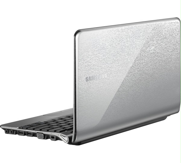 Der Intel Atom N550 Prozessor hat einen integrierten Speichercontroller und trägt damit zum geringen Stromverbrauch bei. Die GMA 3150 Grafikkarte wiederum ist nicht für aktuelle Games (Stand 2010/11) geeignet, dem Prozessor stehen ferner eine 250 GByte große Festplatte und ein 1 GByte großer Arbeitsspeicher zur Seite. Das Kunststoffgehäuse ist recht instabil und lässt sich mit etwas Kraftaufwand an Stellen wie der Base-Unit deutlich eindrücken, der dünne chromglänzende Deckel ruft leider eine Häufung störender Lichtreflexionen hervor. Da er recht straff sitzt, kann er nur mit zwei Händen geöffnet werden, wippt dafür allerdings bei der Nutzung des Samsungs im Auto oder Zug nicht nach. Enttäuschend ist die Qualität der integrierten Webcam. Sie löst lediglich mit 0,3 Pixel auf, ein vollkommen antiquierter Wert. Akzeptabel ist hingegen die Tastatur, die die ganze Breite des Netbooks ausfüllt: Der mittlere Hub und der feste Anschlag sorgen für ein komfortables Schreibgefühl, wenn da nicht der etwas unklare Druckpunkt wäre. Auch das multitouchfähige Touchpad ist als gelungen zu bezeichnen. Die vertikal und horizontal nicht gekennzeichnete Scrollbar ist bei Bedarf deaktivierbar – nur die eingesenkten Tasten beschweren ein schnelles Arbeiten, da die Kanten schnell in den Finger einschneiden.