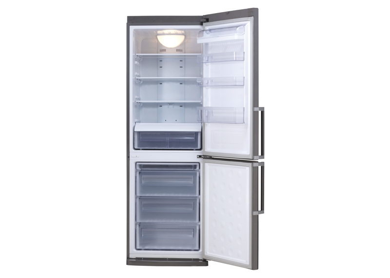 Der Samsung RL-38HGPS hat insgesamt ein Fassungsvermögen von 301 Litern. 207 Liter davon fallen auf den Kühlbereich, 94 Liter auf das Gefrierfach. Das Gerät hat einen jährlichen Verbrauch von 303 kWh und erreicht so die Energieeffizienzklasse A+. Der Gefrierbereich arbeitet mit der No-Frost-Technik. Das bedeutet, es bilden sich keine Eisschichten im Gefrierfach und das Kühlgerät verbraucht somit weniger Strom. Außerdem spart man sich das Abtauen. Ein weiteres Hilfsmittel zum Sparen von Energie ist das akustische Signal, sollte die Tür einmal versehentlich nicht korrekt geschlossen worden sein.