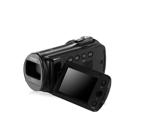 Die SMX-Serie soll mit einem neuen Sensor deutlich verbessert werden, der eine wesentlich höhere Farbtreue bieten und weniger Strom verbrauchen soll. Sicherlich sind diese Faktoren lobend zu erwähnen, doch fragt man sich, ob das Gesamtkonzept noch zeitgemäß ist. Der CMOS-Sensor ist fünf Megapixel groß und zeichnet nur in HD (1.280 x 720 Bildpunkte) bei 25 Bildern pro Sekunde auf. Im so genannten progressiven Modus sind dann auch 50 Bilder pro Sekunde realisierbar. Schließt man die F70 an einen Computer mit offener Internetverbindung an, lassen sich die Filme mit einem Upload-Button direkt an Youtube und andere Videoplattformen senden. Ob dies wirklich als Pluspunkt in der Handhabung zu werten ist, sei einmal dahingestellt. Immerhin erfolgt die Tonaufzeichnung mit einem integrierten Stereo-Mikrofon und soll von brauchbarer Qualität sein.