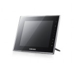 Im Gegensatz zum SyncMaster U70 kann der SPF-800W natürlich mehr als nur eine zusätzliche Arbeitsfläche zur Verfügung stellen, und er kann auch mehr, als nur Fotos wiedergeben. So spielt der SPF-800W auch Videos (DivX, XviD, MJEPG, MPEG ) und Musik (MP3, WAV) ab. Die Dateien können ihm entweder via Speicherkarte (SD(HC)) oder USB zugeführt und im 1 GB großen internen Speicher abgelegt werden. Die Auflösung des 8 Zoll großen Bildschirms wiederum beträgt 800 x 600 Pixel, die Helligkeit erreicht maximal 250 cd/m², der Kontrast 500:1 – allesamt Werte, die eine gute Bildqualität erwarten lassen.