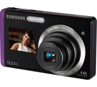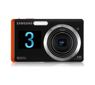 Die Kompaktkamera ST550 von Samsung wartet mit einer echten Neuerung auf: Sie besitzt gleich zwei Displays. Im Gegensatz zu allen anderen Kameramodellen weist sie auf ihrer Vorderseite ein kleines Display auf, das 1,5 Zoll in der Diagonale misst. Es ist besonders praktisch, um Selbstporträts aufzunehmen oder Fotos von Motiven, die nicht in Blickrichtung wie üblich, sondern direkt in Richtung des Fotografen selbst liegen. Außerdem sorgt der kleine Monitor für eine Menge Bedienkomfort: Er muss lediglich angetippt werden (Tap Control), dann schaltet sich die Kamera ein und aktiviert außerdem die Gesichts- und Lächelerkennung. Mit einem einzigen kleinen Lächeln ist also die Aufnahme sofort im Kasten.