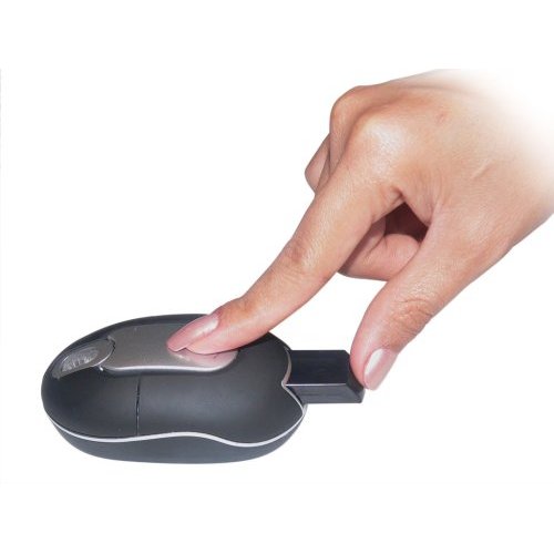 Für den mobilen Einsatz ist die Wireless Mini Maus im Vergleich zu einem Standardexemplar der Gattung rund ein Viertel kleiner. Sie misst 83 x 48 x 27 Millimeter und bringt mit 60 Gramm auch nicht sehr viel Gewicht auf die Waage. Die Kommunikation mit dem Notebook erfolgt über Funk, wobei die Maus noch die etwas ältere 27-MHz-Technologie einsetzt. Diese ist zwar in Sachen Übertragungssicherheit und Latenzzeiten nicht ganz so stabil und effizient wie die mit einer größeren Bandbreite operierende 2,4-GHz-Technologie. Auf den normalen Funkverkehr jedoch, der bei der Arbeit mit der Wireless Mini Maus anfallen dürfte, hat diese keinen nennenswerten nachteiligen Einfluss.