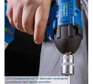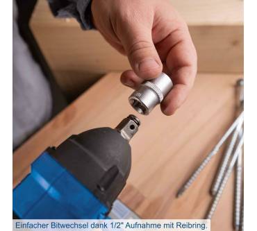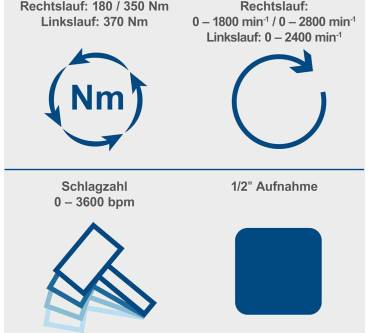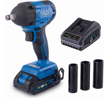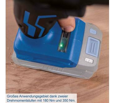 Der Akku-Schlagschrauber von Scheppach ist ein nützlicher Helfer beim saisonalen Reifenwechsel und anderen Schraubarbeiten mit höherer Leistungsanforderung. Das Drehmoment wählen Sie aus zwei Stufen, 180 und 350 Newtonmeter sind möglich. Beim Lösen von Schrauben können Sie mit einem Drehmoment von 370 Newtonmeter rechnen. Angetrieben wird der Schrauber von einem wartungsfreien, bürstenlosen Motor. Der Griff ist ergonomisch geformt und mit Softgrip-Einlagen für sicheres Halten versehen. Der Scheppach kommt solo, Akkus und Ladegerät sind optional in unterschiedlichen Ausführungen vom Hersteller erhältlich. Drei Steckschlüssel der Größen 17, 19 und 21 Millimeter sind im Lieferumfang enthalten.