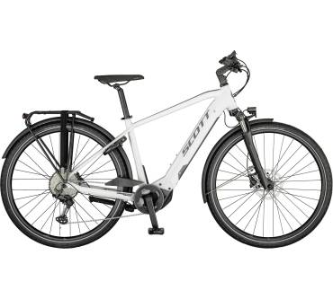 Mit gut 60 mm Federweg und eher flachem Energizer-Gummi von Schwalbe zielt das Sub Sport eRide 10 eher auf straßennahe Touren ab. Dort kann es dafür aber auch mal richtig steil gehen: Zwölf Ritzel zieren die Kassette, die von Shimanos XT-Schaltwerk auch unter Last sauber und schnell angesteuert werden. Der CX-Motor aus der Performance-Linie von Bosch unterstützt mit sattem Drehmoment. Planen Sie lange Touren, macht sich die Investition auch beim Akku bezahlt, bereit stehen üppige 625 Wh. Preislich fährt das Scott mit seiner UVP von rund 3.500 weit vorn, auch wenn bei den Bremsen nur Standardparts geboten sind – kräftigen Bergfexen, die auch noch viel Gepäck ans Rad bringen wollen, empfehlen wir das ähnliche Endeavour 5.B Advance+ von Kalhoff mit 4-Kolben-Bremssätteln.
