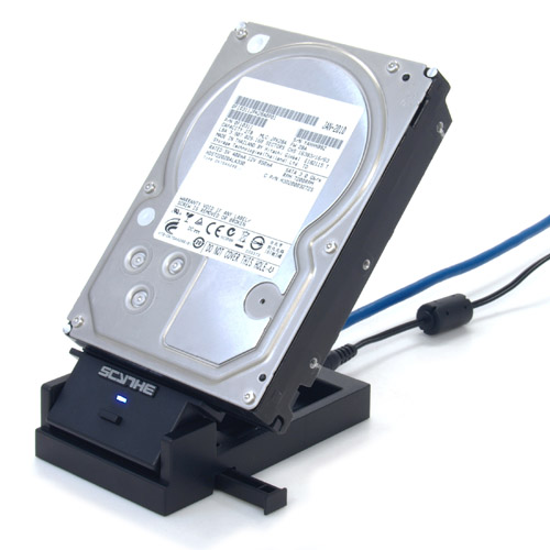 So originell und auch praktisch die Scythe sein mag, einzigartig ist sie nicht. Erst kürzlich hat Icy Dock mit der MB881U3-1SA eine Dockingstation mit derselben offenen Bauweise vorgestellt. Allerdings fällt dieses Modell farblich doch recht gewagt aus, nicht jeder Kunde dürfte bereits sein, das Froschgrün der Station auf seinem Schreibtisch zu dulden. Für diesen Fall bietet sich die in den seriösen Farbeimer mit neutralem Schwarz gefallene Scythe als Alternative an, aber auch preisbewusste Käufer werden sich mit dem etwas langweiligeren Design sicherlich gerne anfreunden: Während nämlich die (übrigens auch für IDE-Platten geeignete) Icy Dock MB881U3-1SA mit rund 50 bis 60 Euro zu Buche schlagen wird, soll die Scythe für rund 28 Euro in den Verkaufsregalen ausliegen.