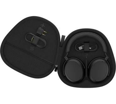 Die Akkulaufzeit kommt im Test auf etwa 56 Stunden bei mittlerer Lautstärke, aktiviertem ANC und mit aptX Adaptive. Hinzu kommt eine Schnellladefunktion und die Möglichkeit, den Over-Ear per Kabel mit Ihrem Audiogerät zu verbinden. Das Problem: Verbaut ist eine 2,5-mm-Klinkenbuchse, sodass Sie ein spezielles Kabel benötigen. Dieses legt Sennheiser zwar bei, erweitert damit aber auch den Kabelhaufen in Ihrer Wohnung.