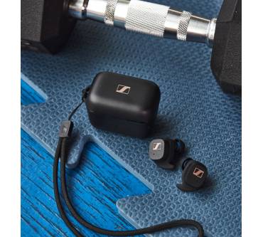 Wie der Name schon vermuten lässt, ist der SPORT True Wireless von Sennheiser ein kabelloser In-Ear-Kopfhörer, den Sie in erster Linie bei sportlichen Aktivitäten tragen können. Zu den Qualitäten, die solche Ohrhörer benötigen, gehört neben einer ausreichenden Schweißresistenz auch ein sicherer Halt. Eine aktive Rauschunterdrückung (ANC) ist aus Sicherheitsgründen oft nicht integriert, auch der Sennheiser verzichtet auf diese Funktion. Dafür sind neben Ohrstöpseln in diversen Größen auch Bügel zur Befestigung an der Ohrmuschel im Lieferumfang enthalten.