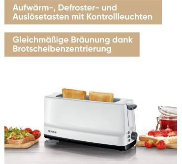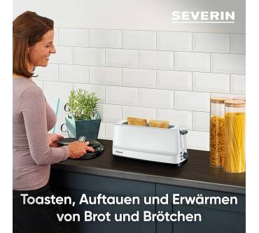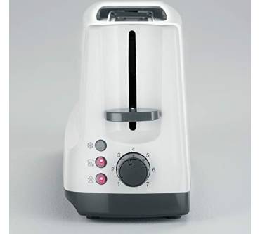 Der Langschlitz-Automatik-Toaster eignet sich zum Rösten von XXL-Toastscheiben und besitzt einen integrierten Edelstahl-Brötchenaufsatz zum Erwärmen von Brötchen oder Croissants. Mit seinem zeitlosen, wärmeisolierten Gehäuse passt er in jeden Haushalt. Die Bedienung ist Nutzern zufolge intuitiv und einfach. Über einen Drehregler können Sie den Bräunungsgrad einstellen und auf individuelle Röstvorlieben eingehen. Darüber hinaus haben Sie eine praktische Auftaufunktion zur Verfügung und eine Aufwärm-Stufe ohne zusätzliche Bräunung. Zudem gibt es eine Auslösetaste mit Kontrollleuchte. Dank der Brotscheibenzentrierung und Röstzeitelektronik mit Temperatursensor werden Toastscheiben von beiden Seiten gleichmäßig gebräunt, wie Rezensenten bestätigen. Kritik gibt es hinsichtlich des etwas wackeligen und zu schmalen Brötchenaufsatzes. Dank des automatischen Toast-Aufwurfs werden Verbrennungen bei der Toastentnahme vermieden. Die herausnehmbare Krümelschublade erleichtert die Reinigung.