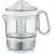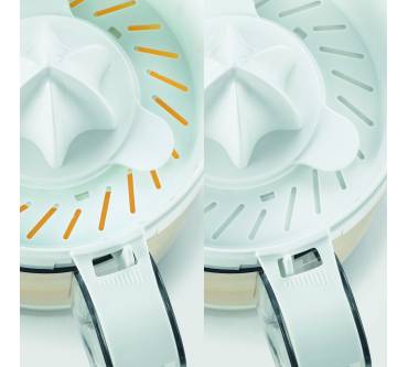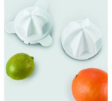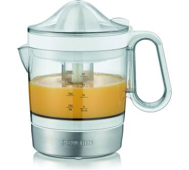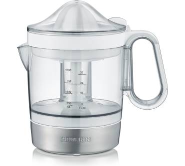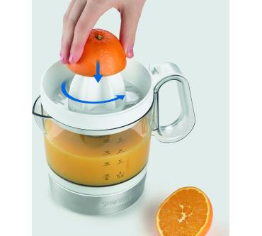 Mit soliden Werten präsentiert Severin die elektrische Zitruspresse CP 3535. Sie bietet komfortable Funktionen: Der Start erfolgt durch Drücken des Presskegels automatisch und ist sowohl links- als auch rechtsherum möglich. So gewinnen Sie aus Orange, Zitrone und Co. die maximale Saftausbeute. Darauf lässt auch der mit 40 Watt für die Geräteklasse ungewöhnlich starke Motor schließen. Der Saft landet in einem ein Liter großen Behälter. Das Volumen ist ungewöhnlich großzügig, sodass die Presse gut in Mehrpersonenhaushalte passt. Zwei Aufsätze liegen bei: Einer für Zitronen und andere kleinere Früchte sowie ein großer, etwa für Orangen und Grapefruits. Für rund 20 Euro erhalten Sie hier eine Leistung, die insgesamt überzeugt.