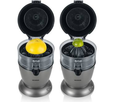 Die automatische Citrus-Presse eignet sich zum Pressen von gesundem und frischem Fruchtsaft aus Orangen, Grapefruits und Zitronen. Dank "Multi-Size-Presskegel" für kleine und große Früchte ist hier kein Wechsel von Aufsätzen nötig. Das spart Zeit und ermöglicht eine stets optimale Saftausbeute. Dank 50 Watt Leistung erfolgt die Pressung ohne manuellen Kraftaufwand. Der zugehörige 400-Milliliter-Saftbehälter bietet genug Fassungsvermögen für einen Zwei- bis Drei-Personen-Haushalt. Alternativ kann unter den hohen Saftauslauf direkt ein Glas gestellt werden. Der Tropfstopp verhindert zuverlässig unerwünschtes Nachtropfen. Dank der geschlossenen Konstruktion wird im Vergleich zu herkömmlichen Modellen ein Vollspritzen der Umgebung vermieden. Presskegel, Fruchtfleischsieb, Saftschale und Deckeleinsatz sind leicht auseinanderzunehmen und spülmaschinengeeignet. Alle Lebensmittel berührenden Teile sind zudem BPA-frei.