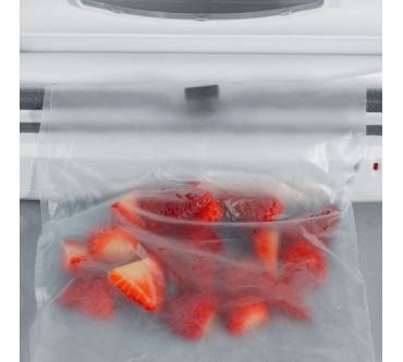 Absolut sicher sein kann man sich dafür, was die Haltbarkeit der Schweißnaht angeht. Das Gerät fertigt nämlich eine Doppelschweißnaht an, bei der kaum Gefahr besteht, das sie unter den im Gebrauch üblichen Belastungen aufplatzt. Erfreulich ist ferner, dass für das Gerät Folienrollen vorgesehen sind, die Maße des Beutels lassen sich also auf auf die Lebensmittel zuschneiden. Allerdings darf das Maß in der Breite nicht 28,5 Zentimeter überschreiten.