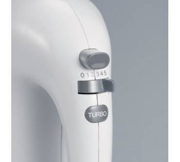 Der HM 3830 von Severin kommt mit einem Spiralkabel daher, das Ihnen ein flexibles Arbeiten erleichtern soll. Das schützt zwar vor Kabelsalat, schränkt aber den Aktionskreis etwas ein, wie Nutzer bemängeln. Punkten kann das Gerät mit 5 Geschwindigkeitsstufen, die Sie leicht einstellen bzw. wechseln. Für kurzzeitig höhere Drehzahlen können Sie zusätzlich einen Turbomodus aktivieren. Der Mixer ist kraftvoll und laut Test für größere Verarbeitungsmengen geeignet. Allerdings werden vom Hersteller als maximale Betriebszeit 4 Minuten angegeben, was beispielsweise bei Hefeteigen zu kurz ist. Danach muss der Severin für 20 Minuten abkühlen. Die bisherigen Rezensenten sind dennoch überwiegend zufrieden und vergeben zu 90 Prozent 4 bis 5 Sterne. Auch preislich ist der Severin nicht zu hoch angesetzt.