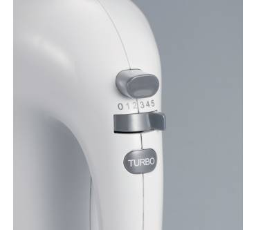Über die Ausstattung des Handrührgeräts müssen nicht viele Worte verloren werden. Der Severin ist mit einem 300 Watt starken Motor ausgestattet, das heißt, auf den ersten Bick hat es den Anschein, als würde er sich lediglich für leichte Rührarbeiten eignen – die Topriege unter den Handrührer wartet nämlich mit Motoren mit bis 450 Watt auf. Doch weit gefehlt, denn auch 300 Watt können durchaus ausreichen, wie der HM 3812 bestätigt. Der Handrührer verarbeitete auf dem Prüfstand der Stiftung Warentest nämlich klaglos kleine und große Mengen. Zur Auswahl stehen dabei insgesamt fünf Geschwindigkeitsstufen sowie eine Turbostufe – das Standardprogramm also. Zum Lieferumfang gehören die obligatorischen zwei Rühr- und Knethaken, das Design ist schlicht und funktional gehalten. Die Lüftungsschlitze für den Motor befinde sich an der Stirnseite. Bei flüssigem Teig kann es daher passieren, dass Spritzer ins Innere eindringen, was wiederum die Reinigung erschwert und dem Severin mit hoher Wahrscheinlichkeit früher oder später die Rüge des ein oder anderen Kunden einbringen wird. Sehr wahrscheinlich ist auch, dass das Gewicht des Handrührers auf Kritik stoßen wird. Zwar macht der Hersteller für das 3820-er-Modell keine Angaben. Die dem 3812-er sehr ähnliche Bauweise lässt jedoch vermuten, dass es ebenfalls ziemlich schwer und damit „klobig“ (
