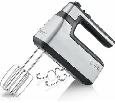 Ohne Kabel rührt es sich leichter – der Handmixer von Severin funktioniert mit Akku und verspricht rund 120 Minuten Laufzeit pro Ladung. Seine Edelstahl-Optik täuscht über das geringe Gewicht von gerade einmal einem Kilogramm hinweg, dank ergonomischem Griff liegt es gut in der Hand. Die Leistung steuern Sie bei diesem Gerät stufenlos, eine Turbo-Taste gibt es zusätzlich. Als Zubehör bekommen Sie den Standard, also Knethaken und Rührstäbe. Kabellose Handrührgeräte sind, trotz unbestreitbarer Vorteile, auf dem Markt eher Exoten; viele sind teurer als der Severin mit rund 70 Euro – oder bieten keine Markenqualität. Für die meisten, herkömmlichen Mixaufgaben heißt es hier daher durchaus zugreifen.