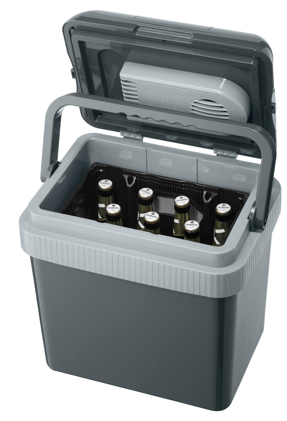 Die KB 2921 hält, wie die meisten Boxen ihrer Klasse, ihren Inhalt zwar über einen längeren Zeitraum kühl, sollte jedoch nicht unbedingt zum Herunterkühlen eingesetzt werden – für diese Aufgabe ist sie denn doch zu schwachbrüstig. Außerdem hält sie auch heiße Speißen warm. Gut verarbeitet und dezent eingefärbt, ist die rund 40 x 30 x 43 Zentimeter große Kühlbox KB 2921 für günstige 73 Euro über Amazon zu haben.