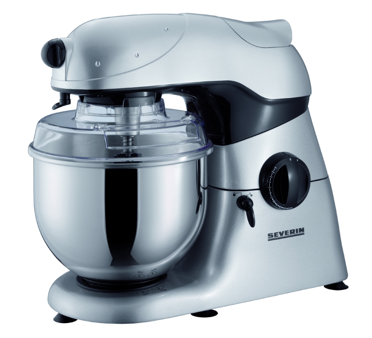 Die Severin KM 3886 hat einen 800 Watt starken Motor. Die Leistung ist stufenlos regulierbar.Die große Rührschüssel ist aus Edelstahl und hat ein Fassungsvermögen von 4,5 Litern. Sehr praktisch ist der Spritzsschutz, der beim Rühren auf der Schüssel befestigt wird. So kann keine Zutat die Schüssel verlassen, durch eine kleine Öffnung aber weitere Zutaten eingefüllt werden.