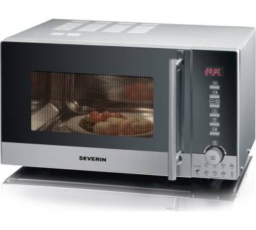 Der Garraum des Gerätes enthält einen Drehteller von 24,5 Zentimetern auf den aber, wie manche User berichten, Teller, etwa mit Pizzen, von rund 26 Zentimetern passen sollen. Die Speisen oder Geschirre auf dem Drehteller können zudem bis gut 17 Zentimeter hoch sein. Außer der Mikrowelle hat Severin einen 1350 Watt starken Grill und eine Heißluftfunktion in den Ofen integriert. Die Heizarten können separat, aber auch kombiniert eingesetzt werden. Einschließlich Auftau- und Grilleinstellung stehen dazu 10 verschiedene Leistungsstufen bereit.Garprogramme und Timer