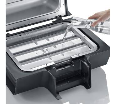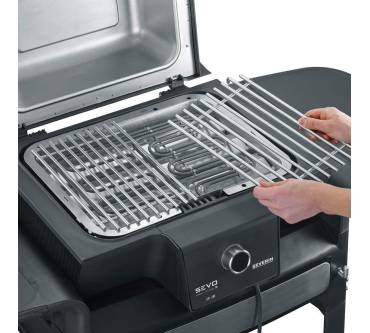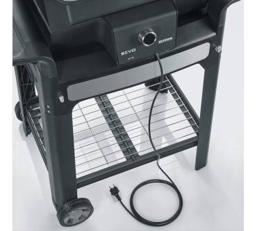 Der Elektrogrill von Severin ermöglicht Ihnen das Grillen in drei unterschiedlichen Temperaturbereichen, die sich vom Nachgaren bei niedrigen Temperaturen bis zum Hochtemperaturgrillen bei 500 Grad Celsius erstrecken. Regulieren können Sie die Temperatur stufenlos über einen Drehregler, in den eine Temperaturanzeige integriert ist. Der Grillrost ist wertig aus Edelstahl gearbeitet. Wenn Sie sich für smarte Haustechnik begeistern, können Sie den Grill auch via Smartphone mithilfe der Hersteller-App steuern. Die Gefahr von Verbrennungen verringert sich durch das wärmeisolierte Gehäuse. Bei der Reinigung macht es Ihnen der Severin vergleichsweise einfach, einige seiner Komponenten lassen sich entnehmen. Der Grill kommt inklusive eines Grillwagens, der Ihnen zwei seitliche Ablagen für Ihr Zubehör plus eine größere Ablage im Untergestell bietet. Bewegen können Sie den Grill auf zwei Laufrollen aus Kunststoff. Als platzsparende Alternative ist dieses Modell auch als Tischgrill ohne Grillwagen zu haben.