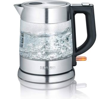 Der WK 3468 von Severin ist mit einem Füllvolumen von einem Liter für den kleineren Haushalt konzipiert. Wie die meisten modernen Wasserkocher können Sie ihn mit einer Hand bedienen bzw. öffnet sich der Deckel auf Knopfdruck. Ein Fingerschutz verhindert, dass Sie sich an der heißen Kanne verbrennen. Dank drehbarem Sockel haben Sie beispielsweise auch vom Sofa aus bequemen Zugriff, Linkshänder können allerdings die nur an einer Seite angebrachte Mess-Skala weniger gut ablesen. Nach Erreichen der Siedetemperatur schaltet das Gerät automatisch ab, eine Warmhaltefunktion ist nicht integriert. Die große Deckelöffnung erleichtert Ihnen das Reinigen, auch der Filter kann entnommen und abgewaschen werden. Die bereits zahlreich vorhandenen Rezensionen fallen überwiegend sehr positiv aus, vereinzelt wird von schnellem Rosten der Metallteile und Kalkablagerungen berichtet.