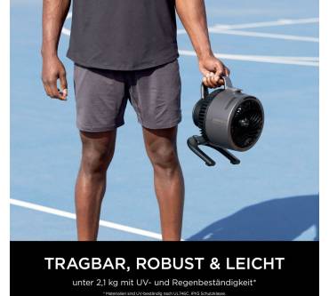Tipp: Leise. Dieser tragbare Ventilator bietet starke Luftzirkulation und eine erfrischende Sprühnebel-Funktion. Mit seiner Mobilität und geräuscharmen Betrieb ist er ideal für drinnen und draußen, auch wenn die Akkulaufzeit bei maximaler Leistung begrenzt ist.