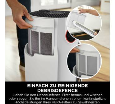 Der Luftreiniger von Shark sorgt in kleineren Räumen für die Aufwertung der Luftqualität. Pro Stunde filtert er die Raumluft in einem 12 Quadratmeter großen Zimmer etwa fünfmal. Von der Masse der Mitbewerber hebt sich der SHARK durch seine ausgesprochen lange Filterstandzeit von bis zu 5 Jahren ab. Erreicht werden soll diese Standzeit durch den Einsatz zweier Vorfilter, die gröbere Schwebstoffe aus dem Luftstrom entfernen. Feinstaub und Krankheitserreger werden von einem HEPA-Filter der aktuell gebräuchlichen Klasse 13 zurückgehalten. Eine Aktivkohlestufe neutralisiert unliebsame Gerüche wie Küchendunst. Die aktuelle Luftqualität wird von einem Partikelsensor ermittelt, der seine Messergebnisse über ein Display und einen Ampelindikator ausgibt. Im Automodus müssen Sie sich nicht um die Geräteeinstellungen kümmern, die ideale Gebläseleistung wird anhand der Schwebstoffwerte ermittelt.