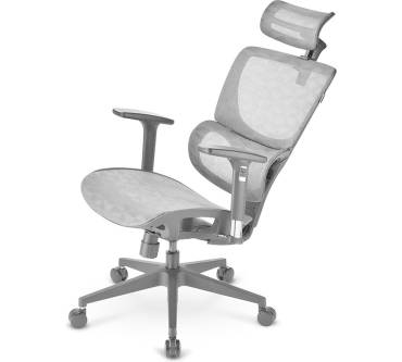 Der Office Pal CM30 von Sharkoon stellt sich mit (fast) Vollausstattung vor: Sie können die Rückenlehne an Ihre Körpergröße anpassen, die Lordosenstütze für eine wirbelsäulengerechte Haltung justieren und die Armlehnen in der Höhe, Breite und Tiefe positionieren. So lässt sich das Sitzmöbel sehr exakt an Ihre Bedürfnisse anpassen. Die ebenfalls verstellbare Kopfstütze kann die Schulterpartie entspannen, der Netzrücken schmiegt sich an Ihren Körper an und entlastet. Die Höheneinstellung reicht von 44 bis 52 Zentimeter. Das ist ideal für Nutzer zwischen etwa 1,60 und 1,95 Meter. Belastbar ist der Stuhl bis zu 120 Kilogramm. Das ist ein üblicher Standardwert. Schwächen sind lediglich in der ergonomischen Qualität zu finden. Die integrierte Wippmechanik neigt zwar die Rückenlehne mit Ihren Bewegungen nach hinten und zurück, allerdings bleiben Sitz und Lehne dabei in einem konstanten Winkel. So öffnet und streckt sich der Oberkörper dabei nicht, was anstatt zu entlasten eher zu Verspannungen führen kann. Für die Kurzzeitnutzung kann der Stuhl dennoch infrage kommen – auch weil der Preis von rund 250 Euro für die Ausstattung fair ist.