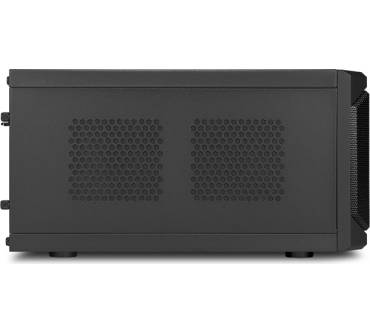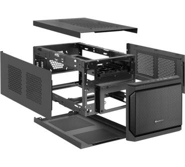 Stärken und SchwächenNur 18 Zentimeter hoch und 22,5 breit ist der Tower. Weil die Füße frei positioniert werden können, lässt es sich auch hochkant aufstellen. Trotz der geringen Außenmaße kann eine Grafikkarte mit einer Länge von mehr als 31 Zentimetern und doppelter Breite verbaut werden und über dem Prozessor ist ausreichend Platz für einen überhohen Kühler. Daneben können noch zwei Festplatten installiert werden. An der Oberseite befindet sich bereits ein Lüfter. Dort kann für einen noch besseren Wärmeaustausch ein Radiator mit einer Länge von 240 Millimetern verbaut werden. Etwas vorsichtig muss man mit dem Netzteil sein. Dieses sollte möglichst kompakt ausfallen, sodass beispielsweise eine modulare Stromversorgung im Normalfall zu lang ist. Hier wird man wahrscheinlich zu einem SFX-Netzteil greifen müssen, das ein wenig teurer als der Standard ist.