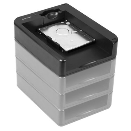 Das Gehäuse eignet sich für SATA-Platten mit dem Formfaktor 2,5-und 3,5-Zoll, als interne Schnittstelle stehen SATA I und II zur Verfügung, zu SATA II ist das Gehäuse kompatibel, der Datenverkehr nach außen läuft über USB 3.0. Pro Gehäuse werden derzeit rund 25 Euro (Amazon) fällig, die Sharkoon QuickDesk nit Klappdeckel wiederum ist für knapp 30 Euro zu haben (Amazon).