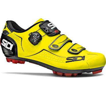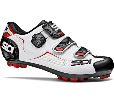 Wenn es Ihnen bei einem Schuh für das Mountainbiking auf straffen Sitz und eine hinreichend steife Sohle ankommt, kann der MTB Trace von Sidi eventuell das passende Modell für Sie sein. Durch seinen besonderen Schnitt und unterschiedliche Materialien soll dessen Schaft besonders straff sitzen. Ein Schnellverschluss-System mit Nylonschnur und Drehverschluss sowie zwei Klettverschlüsse helfen zudem dabei, ihn an den Fuß anzupassen. Die Sohle besteht aus Nylon und ist für noch mehr Festigkeit mit Carbon verstärkt. Dadurch wird eine gute Übertragung der Beinkraft auf das Fahrradpedal erreicht. Wird ein Pedalsystem genutzt, kann dieses an den vorbereiteten Schraubvorrichtungen angebracht werden. Zu all den positiven Eigenschaften sieht der Fahrradschuh auch noch gut aus. Was will man mehr?