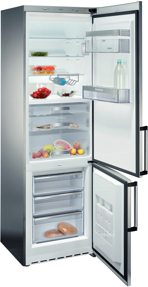 Der Gefrierteil des Siemens hat ein Fassungsvermögen von 68 Litern und ist in drei Schubladen unterteilt. Der Siemens arbeitet mit der NoFrost-Technik, so dass ein Abtauen nicht nötig ist und das Gerät einen niedrigeren Energieverbrauch hat. Bei der Energieeffizienz wurde die Kühl-Gefrierkombination in die Klasse A+ eingestuft.