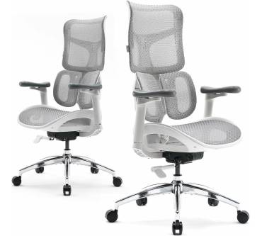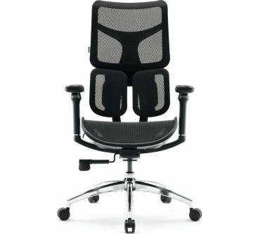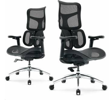 Das Drehstuhlmodell Doro S100 von Sihoo präsentiert sich mit durchwachsenen Eigenschaften. Zu den Vorteilen zählt die zweigeteilte Lordosenstütze, die durch eine integrierte Federung eine sehr exakte Anpassung verspricht. Das Feature hält Ihre Wirbelsäule aufrecht, kann so zur Entlastung und einer gesunden Sitzhaltung beitragen. Damit das optimal gelingt, sollte der Stuhl möglichst exakt zu Ihren Körpermaßen passen. Dank in der Tiefe verstellbarem Sitz und höhenverstellbarer Rückenlehne dürfte das gewährleistet sein. Ab Werk sind überdies in Höhe, Breite und Tiefe verstellbare Armlehnen an Bord. Das Mesh-Gewebe der Lehne belüftet und dürfte vor allem an heißen Tagen angenehm sein. Weniger gut schneidet der Drehstuhl hinsichtlich der Verarbeitungsqualität ab. In einem Test fielen unsauber gefertigte Teile auf und dazu kommen eher klapprige Armlehnen, die sich auch ohne ausgelöst zu werden, verstellen. Welche Mechanik verbaut ist, bleibt unklar. Vermutlich handelt es sich um eine Wipptechnik, die Sitz und Rückenlehne in einem festen Winkel bewegt. Bei längerem Ausharren auf einem solchen Stuhl können Verspannungen auftreten. Die Nachteile sind angesichts des Preises nicht überraschend. Für rund 300 Euro ist keine Topqualität zu erwarten.