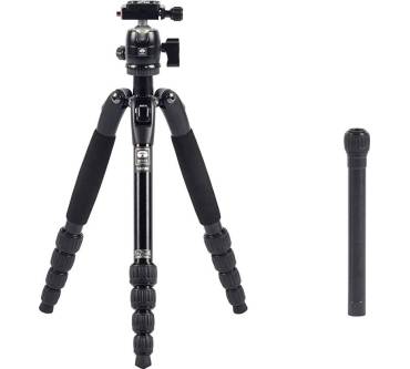 Gerade einmal 1,1 Kilogramm bringt das SIRUI T-005SK auf die Waage und wird damit der Serienbezeichnung Traveler Ultralight gerecht. Dank des niedrigen Packmaß von 32 Zentimetern lässt es sich unterwegs sehr gut verstauen. Es schultert zuverlässig Kameras mit einem Gewicht von bis zu 4 Kilogramm und kommt auf eine maximale Höhe von 128 Zentimetern. Die Mittelsäule lässt sich dabei nicht einfahren - sie sitzt starr auf der Stativschulter. Um eine höhere Stabilität zu erzielen, können Sie die Mittelsäule allerdings abnehmen und den zugehörigen Kugelkopf B-00K auf die Stativschulter schrauben. Die Arbeitshöhe beträgt dann noch 96 Zentimeter. Auf Amazon äußern sich Kunden sehr zufrieden über Verarbeitungsqualität und Stabilität. Was dem kleinen Stativ fehlt, ist jedoch eine Einbein-Funktion - ein Feature, das viele Modelle in der Preisklasse um 100 Euro bieten.