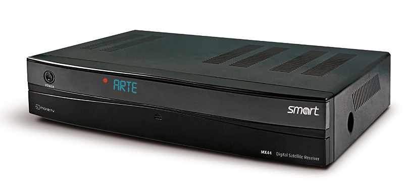 MoreTV bietet außerdem einen Serienassistenten, der alle zu einer Serie gehörenden Sendungen auf Knopfdruck heraussucht und die Aufnahmen auf den integrierten, 250 Gigabyte großen Speicher des MX 44 speichert. Ganz ähnlich funktioniert das Super-Smart-Recording: Her werden alle Sendungen aufgenommen, in denen ein vorher festgelegter Schauspieler mitspielt. Weitere Features von „moreTV“ sind der automatische Mitschnitt von Nachrichten und Wetterberichten und eine Programmierung über Handy oder Internet. Nach Ablauf des ersten Monats schlägt der Premiumservice mit monatlich 5,95 Euro zu Buche. Doch auch ohne den kostenpflichtigen Dienst kann sich der Smart Electronic durchaus sehen lassen: Mit an Bord sind gleich zwei DVB-S-Tuner sowie eine Common-Interface-Schnittstelle für Pay-TV-Sender. Programme in Standardqualität werden mittels Upscaler auf 720p (Vollbildverfahren) oder 1080i (Halbbildverfahren) gebracht und über den HDMI-Anschluss zum Flachbildfernseher geschickt. Alternativ entscheidet man sich für die Verbindung via Scart, natürlich bleibt das Upscaling dann außen vor. Das Tonsignal gelangt über einen koaxialen Digitalausgang zur Stereo- oder Surround-Anlage. Über zwei USB-Schnittstellen lassen sich externe Festplatten anschließen, außerdem hat man dem Receiver einen Ethernet-Anschluss spendiert. In Sachen Komfort darf man sich auf acht Favoritenlisten, auf die Fähigkeit zum zeitversetzten Fernsehen (Timeshift) und auf eine alphanumerische Anzeige freuen.