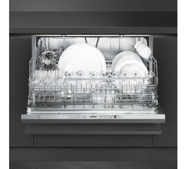 Ein Beispiel ist der Smeg STO905-1, der für einen horizontalen Möbelkorpus gedacht ist und damit die Lösung für Küchen ist, in denen ein handelsübliches Gerät keinen Platz finden würde. Dadurch dass das Gerät zwar sehr flach aber eben auch breit gebaut ist, fällt der zur Verfügung stehende Spülraum fast gleich groß aus. Insgesamt passen bis zu 12 Maßgedecke ins Innere, was zumindest vor einigen Jahren noch Standard bei herkömmlichen 60-Zentimeter-Modellen war. Heute fassen die zwar 13 bis 14 Maßgedecke, der STO905-1 hält aber ganz gut mit.