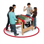 leichtgängigen und natürlich überaus praktischen Faltmechanismus von den Kunden gelobt wird. Allerdings sollte das Zusammenfalten von einem, besser noch von zwei Erwachsenen übernommen werden, für Kinder ist diese Aufgabe aufgrund der Größe des Tischs sowie wegen seines Gewichts mit Sicherheit zu schwer. Leider liegen über die Abmessungen des Smoby im zusammengeklappten Zustand keine genauen Angaben vor, wobei vor allem natürlich die Breite interessant wäre. Aufgeklappt wiederum ist er 125 mal 85 mal 84 Zentimeter groß. Der Holzrahmen trägt allerdings ziemlich dick auf, mit der Folge, dass das Spielfeld des Smoby mit 95 mal 59 Zentimetern etwa zehn Zentimeter kürzer ausfällt als bei anderen Kinder-Tischkickern – ein wichtiges Stichwort. Denn der Smoby ist in der Tat als Kickertisch für Kinder und weniger für Erwachsene gedacht, als Einstiegsalter nennt der Hersteller etwa 8 Jahre. Aufgrund seiner Robustheit kann er sicherlich auch von Jugendlichen bespielt werden, und für Gelegenheits-/Hobbyspieler im Erwachsenenalter eignet er sich mit Einschränkungen natürlich auch. Wer jedoch den Tisch dazu benutzen möchte, sich die hohe Kunst des Kickerns anzueigen, sollte lieber die Finger von ihm lassen. Für Übungseinheiten unterscheidet sich der Smoby von den hochwertigen Modellen zu stark, raffinierte Stopp- und Schießmanöver werden auf seiner Spielfläche kaum auszuführen sein.