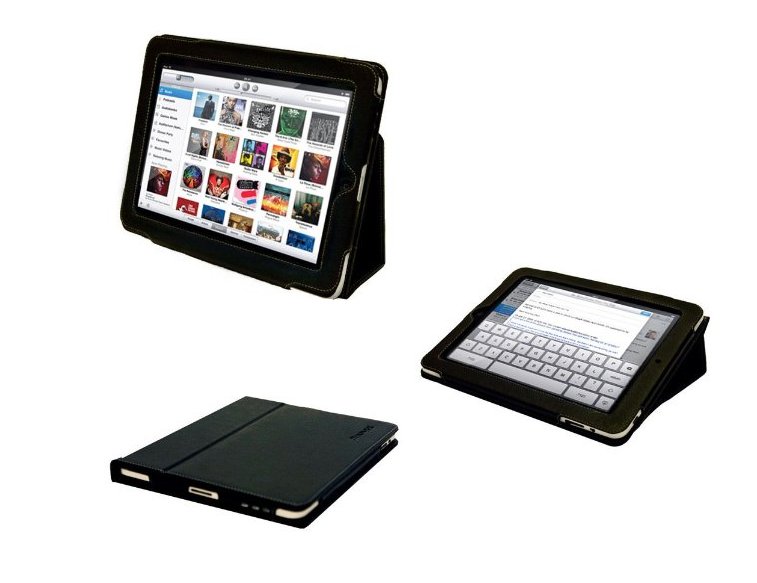 iPad-Besitzer, deren öffentliches Geltungsbedürfnis nicht sonderlich stark ausgeprägt ist, sondern die einfach nur eine gute Schutzhülle für ihr Surf- und Video-Tablet suchen, kommen mit dem iPad Case von Snugg voll ihre Kosten. Die Hülle dient außerdem gleichzeitig noch als Ständer, wobei der Tablet-PC sowohl im Quer- als auch im Hochformat aufgestellt werden kann – in letzterer Position ist das iPad Case allerdings, wie Praxistests gezeigt haben, nicht hundertprozentig stabil. Dafür kann man sich absolut sicher sein, dass die Magnetverschlüsse so fest halten, dass das iPad auf keinem Fall aus der Hülle rutschen kann.