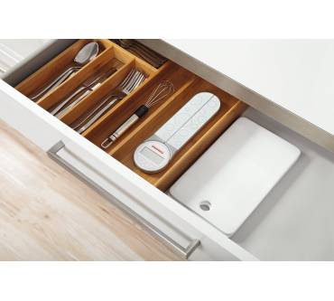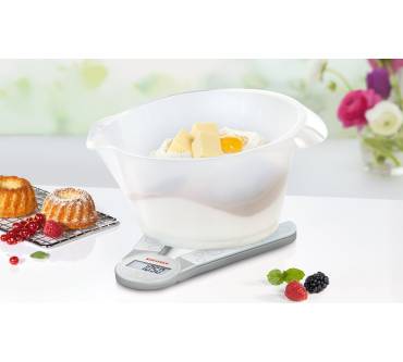 Innovatives Design. Einzigartige, platzsparende digitale Küchenwaage mit anpassbaren Schenkeln. Ideal für verschiedene Schüsselgrößen, aber weniger präzise bei Kleinstmengen.