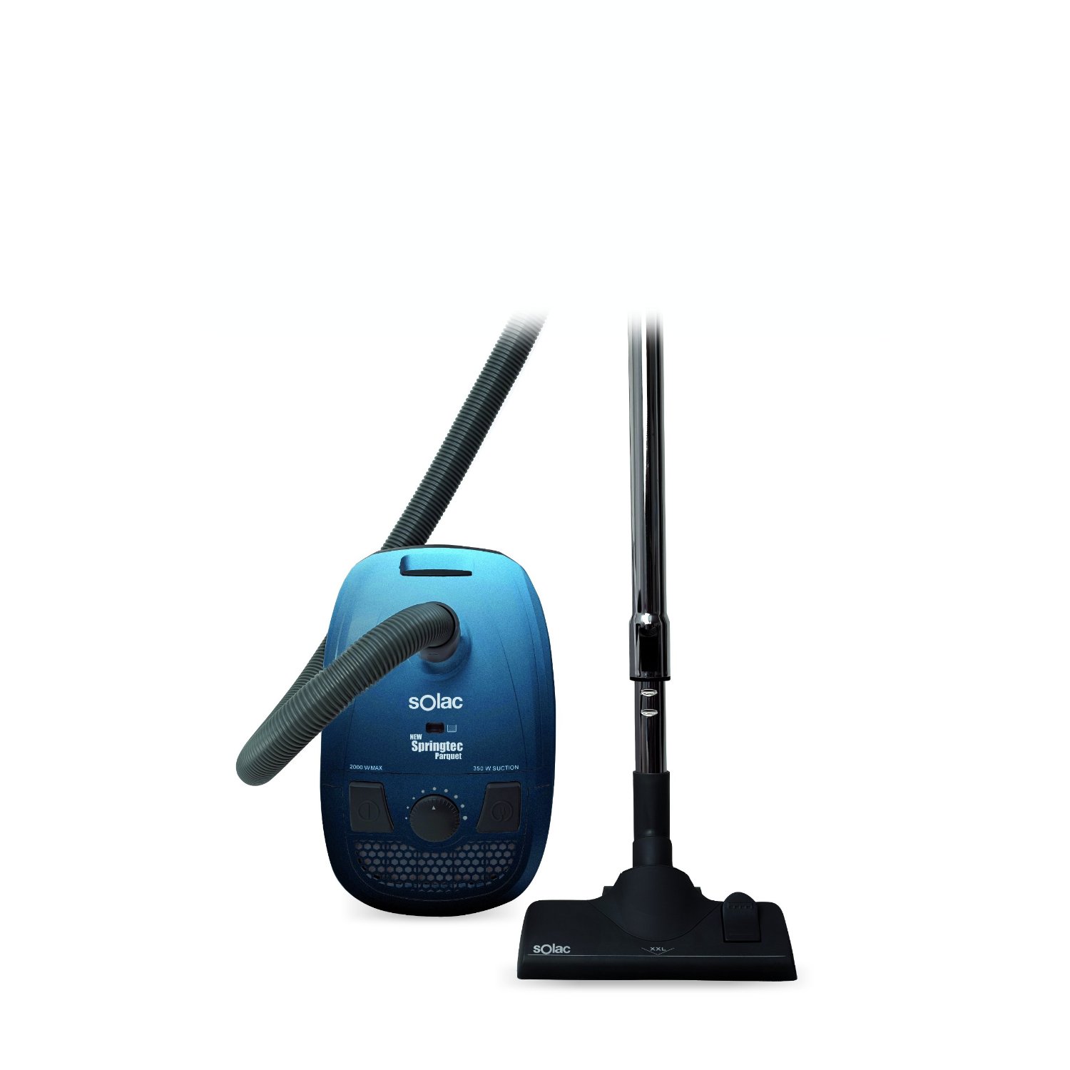Als einziges Modell der aktuellen „New-Springtec“-Serie von Solac bietet der Parkettspezialist eine hohe Saugkraft von 350 Watt an der Bodendüse, seine beiden Mitstreiter bringen es nur auf 325 Watt. Entsprechend ist auch die Leistungsaufnahme höher, sie liegt bei 2.000 anstatt 1.800 Watt. Daraus lässt sich die Vermutung ableiten, dass der Staubsauger in der Tat auf Hart- und Glattböden eine gute Figur abgeben wird, denn dies ist schon bei den schwächer ausgestatteten Modellen der Fall. Offen bleiben müssen hingegen seine Qualitäten auf Teppich, hier wäre jede Behauptung reine Spekulation. Aber vielleicht entpuppt sich der Solac auch in dieser Disziplin als guter, solider Staubsauger und beschert damit seinem Käfer eine Überraschung – denn erwarten kann man dies nicht unbedingt.