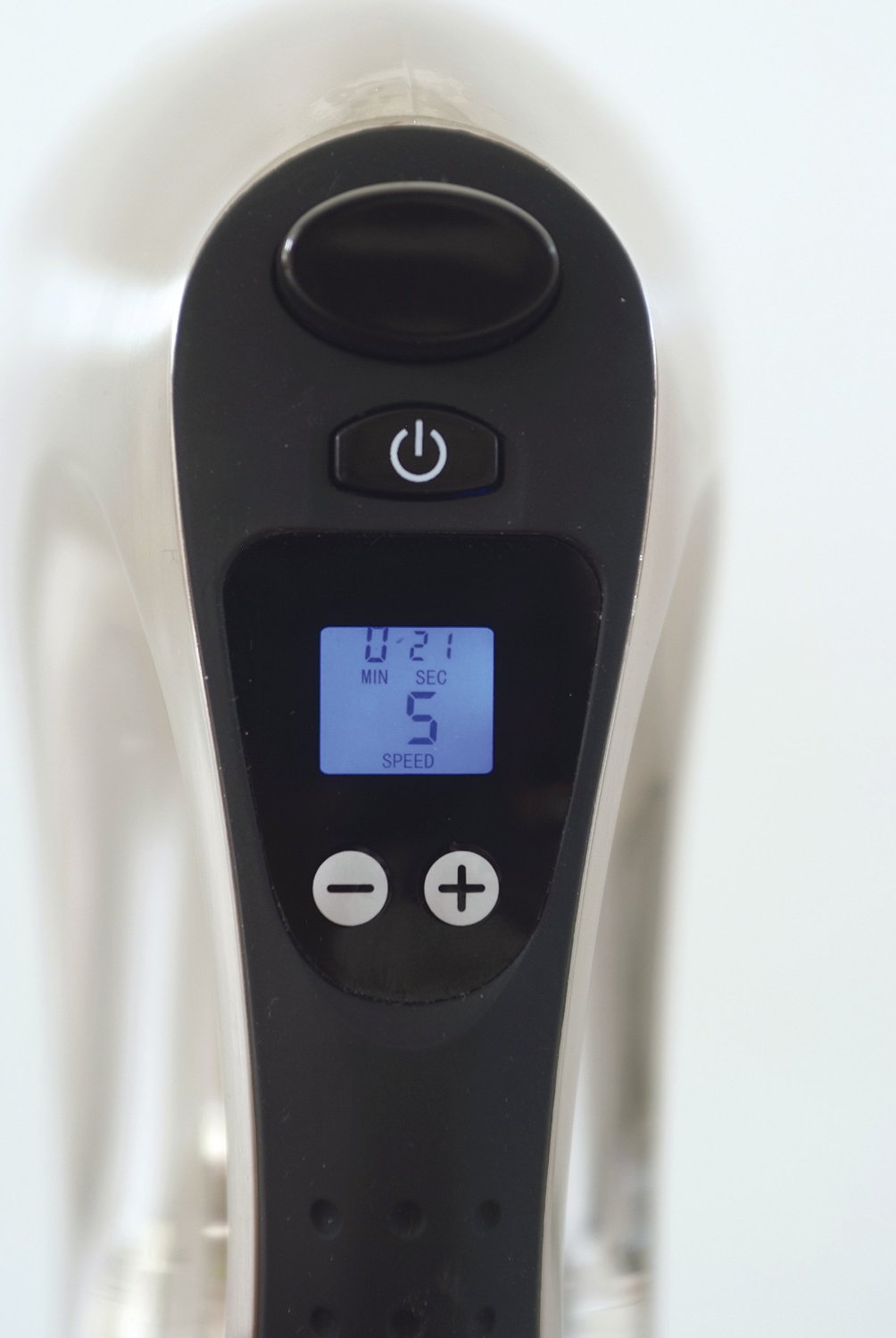 Die eingangs erwähnte Zubehörbox für Kabel und Rühr-/Knethaken wird einfach am Gerätekörper befestigt. Die Folge: Alles ist parat, sobald der Rührer aus dem Schrank genommen wird. Kein Kramen also in Schubladen mehr. Bedienkomfort wiederum wird ebenfalls groß geschrieben. Der Solis ist, wie der Name schon andeutet, super kompakt, die Maße belaufen sich auf 20 x 20,5 x 9,5 Zentimeter. Dazu kommt noch ein mehr als erträgliches Gewicht von knapp unter 1,5 Kilogramm – wenn’s mal wieder etwas länger dauert eine wahre Wohltat. Und apropos Zeit: Bei Weitem mehr als nur ein Gimmick ist die beleuchtete digitale Anzeige am Griff. Auf ihr lassen sich die eingestellte Geschwindigkeitsstufe – insgesamt sechs stehen zur Verfügung – sowie die verstrichene Betriebszeit ablesen.